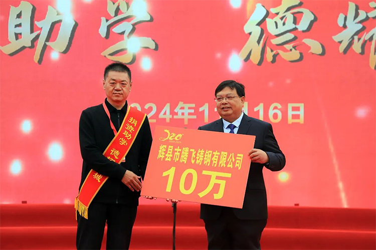 在這個意義非凡的日子里,我們公司的李總受邀出席了這場慶典。李總不僅作為嘉賓參與,更通過實際行動展現了對教育事業的支持與尊重——騰飛鑄鋼慷慨捐贈了十萬元人民幣,支持學校發展。